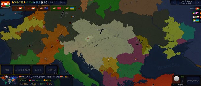HOI4 オーストリアプレイ指南 オーストリアプレイの注意点をメモ。 目標:オーストリアハンガリー二重帝国の復活。 チェコ、ユーゴスラビア、ハンガリー、イタリア、ドイツ、ルーマニア、ポーランド、ソ連。 現在の路線。 工場の全力生産で初期兵力の装備充足はギリギリ開戦までに間に合う。 ファシスト化はあとに民主化するか相談しながら国家方針でとるオーストリア=ハンガリーは、かつてヨーロッパに存在したカントリーボールです。 両目に眼帯をつけている。 両目に眼帯をつけている。(大事な事なので2回行った) セルビアにも勝てなかった雑魚国家 両目に眼帯がついているので、何も見えてないキャラにされていることがある。現在のオーストリア 1914年第1次世界大戦前のオーストリア=ハンガリー帝国(橙) ÖsterreichUngarn im Jahr 19 ÖsterreichUngarn im Jahr 1914 Die Aufteilung der ÖsterreichischUngarischen Monarchie gemäß den Pariser Vorortverträgen nach dem Ersten Weltkrieg